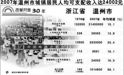 编者按:一个交通闭塞、位置偏远的海港小镇发展成为富裕发达的沿海大都市,从资源匮乏、可耕地少的农业生产地区实现了向工业生产基地和品牌之都的腾飞,百姓生活从贫困到温饱再到小康,积累了高达4000亿元的民间资金……这些历史性的跨越,都源自独特的温州发展模式,堪称改革开放中一个极为耀眼的亮点。