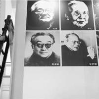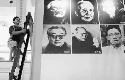 上海一家出版社在悬挂巴金、冰心等文化大师的照片。 |