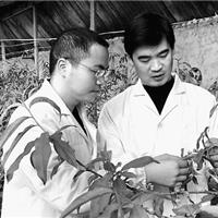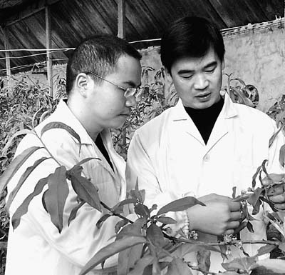 谢思惠(左)与导师高东升教授正在做无休眠栽培试验。 |