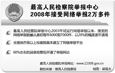 举报电话和举报网站受理反映国家工作人员职务犯罪的举报和反映人民检察院工作人员违法违纪行为的控告。最高人民检察院举报中心有关负责人介绍,电话举报、网站举报将做到件件有回音。“12309”电话和最高人民检察院举报网站设有严格保密措施,群众可放心举报。