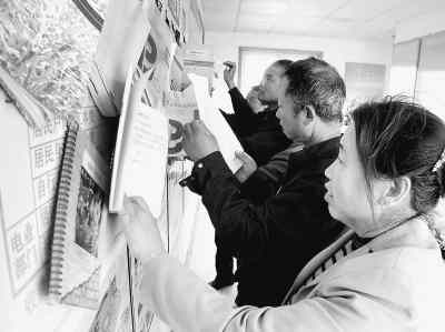 沈北新区黄家锡伯族乡拉塔湖村村民正在查看村里的工作情况,包括粮食直补资金发放、财务明细、机动地承包明细及村里的其它工作。王 瑜摄 |
