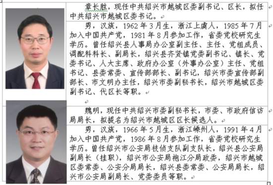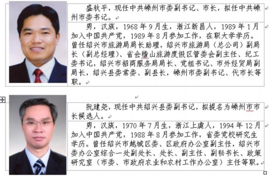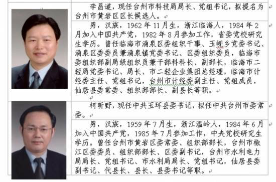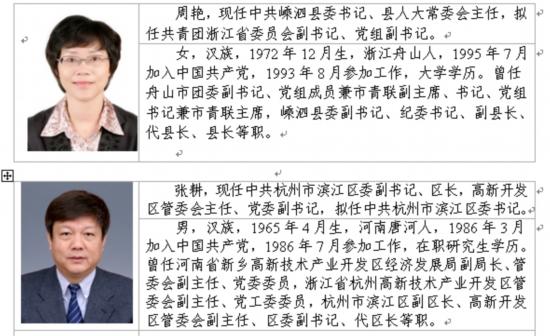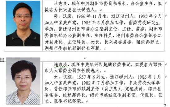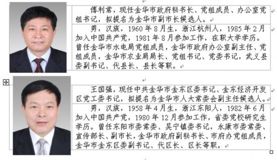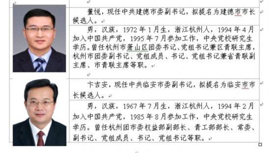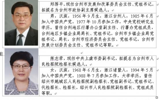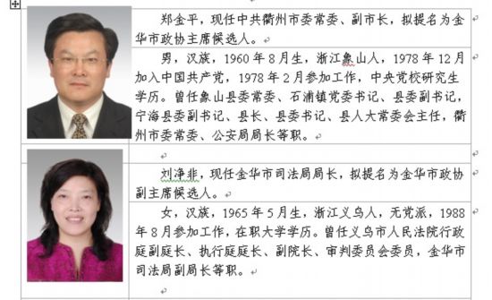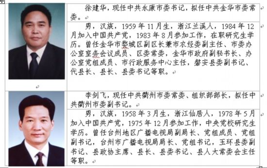 金华、衢州、台州等3市人大、政府、政协领导班子换届拟提任候选人名单