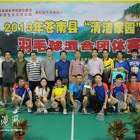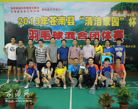 龙港网6月15日讯:由苍南县环境综合整治领导小组办公室和县生态办主办,县清洁办,县体育局协办的"2013年苍南县“清洁家园”杯羽毛球团体赛在龙港兴华羽毛球会所举行。县委常委、龙港镇委书记丁振俊为本次比赛开球,县委常委、宣传部长林森森致辞,县委宣传部副部长、文明办主任郑德菊主持本次开幕仪式。来自全县各乡镇十二支代表队,120名运动员参赛。龙港镇领导李孝取、吕存阳、谢磊、朱文胜、丁云勇、缪维宝和县环保局、县环境综合整治办、县生态办、县清洁办等领导现场观摩本次比赛。