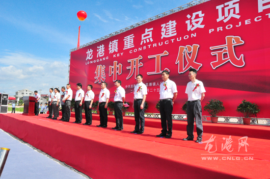 龙港网6月26日讯:昨天上午,龙港镇举行重点项目集体开工仪式。此次开工项目共11个,总投资13.8亿元。这次集体开工,将掀起龙港项目建设新一轮热潮,为全镇经济社区发展注入新的强劲动力。县长黄荣定宣布重点项目开工令;县、镇领导苏庆明、黄锦耀、丁振俊、上官光强出席仪式;仪式由镇委副书记、镇长王忠秀主持。