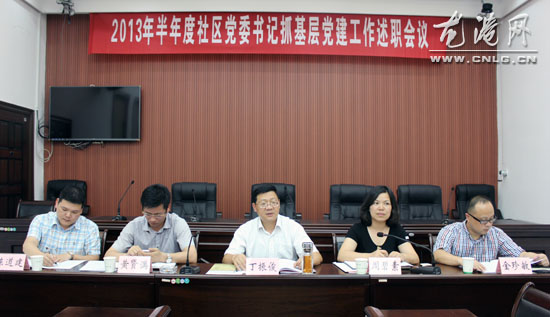 龙港镇6月26日讯:昨天下午,龙港镇召开了2013半年度社区党委书记抓基层党建工作述职会议。镇领导丁振俊、周碧素、黄贤满、金珍敏及各社区党委书记、副书记,相关部门负责人等参加。