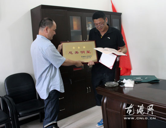 龙港网6月27日讯:为了大力倡导扶危济困、团结互助的慈善风格,弘扬慈善文化,昨天下午,龙港镇副镇长陈贤选、镇慈善总会副会长李其豹等镇领导先后来到自来水厂、河底高村、诚大、金田等地,分别给荣获2012年度“慈善明星”“慈善之星”的单位和爱心人士送上了荣誉牌匾和证书,以兹鼓励,希望受表彰的单位和个人再接再厉,进一步弘扬中华民族扶危济困的传统美德,为全面推进龙港镇慈善事业发展,构建社会主义和谐做出新的贡献。