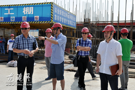 龙港镇人大代表督查重点民生工程建设进展情况 图为龙港高级中学工地