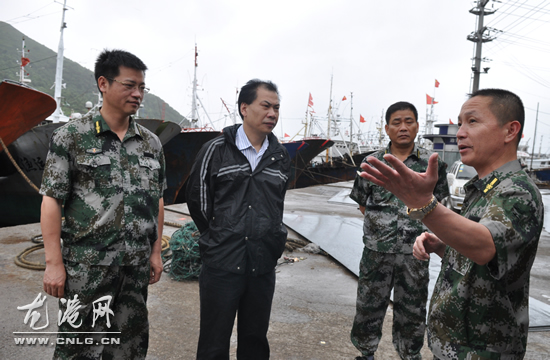 龙港网7月13日讯: 随着今年第七号台风“苏力”来袭,今天早上,镇长王忠秀在舥艚、芦浦社区调研防汛抗台时指出,要严格落实防汛抗台预案,及时排查社区危房,在台风来临前转移相关人员,确保人民群众生命安全。镇领导上官光强、黄贤满、丁云勇陪同调研。
