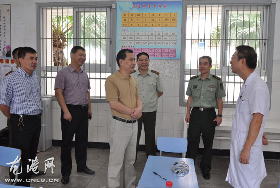 龙港网7月18日讯:龙港镇征兵目测体检工作已经全面展开,今天上午,镇领导王忠秀、朱文胜、黄传朴、缪维宝、章定宇一行来到龙港五小征兵体检站,检查龙港夏季征兵目测体检工作,和看望在此体检的预征青年和负责体检的医务人员。