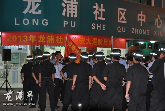 龙港网8月9日讯:最近一段时间持续的高温,使龙港进入了“烧烤”模式,夜幕降临空气还是热浪逼人。为建设平安龙浦,构建和谐社会,营造安定团结的社区环境,昨天晚上,龙浦社区就在酷热中举行治安大巡防活动启动仪式。龙浦社区警务室全体干警、龙浦社区党委、管委会全体干部、各村居、志愿者等150来人参加此次大巡防。镇委委员、龙港公安分局局长杨成革参加治安大巡逻活动。