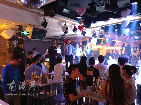 龙港网8月16日讯:(陈记)为进一步净化龙港社会风气,针对当前城区公共娱乐场所的治安情况,8月15日晚上10点40分,龙港公安分局组织开展公共娱乐场所治安清查统一行动。该局共出动百名警力,突袭本色酒吧等公共娱乐场所,进行治安大清查行动,利用警务通核查身份,深入到每包厢开展地毯式检查,从中搜寻发现各种违法犯罪线索。民警在清查过程中,发现多名男女有吸毒嫌疑,于是对其一一进行尿液检验,确认其中有吸毒品行为,民警随即将其带回公安分局作进一步处理。