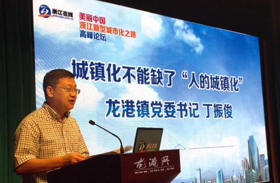 苍南县委常委、龙港镇委书记丁振俊作“新型城市化核心在于‘人的城镇化’”主题发言