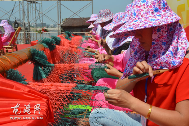 随着一声令下,18枚竹梭开始在渔网上快速穿梭,渔妇们灵巧的双手,精致的手工令现场的观众啧啧称奇。最后经过1小时的精彩比拼,1号渔妇以1小时织完2880眼的成绩取得了冠军。龙港镇委副书记、舥艚社区党委书记黄贤满及社区班子领导为获奖选手颁奖。