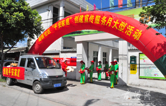 龙港网9月20日讯:日前,湖前社区组织巾帼志愿者开展“平安家庭”创建宣传服务月大型活动。在隆隆的腰鼓声乐中,妇联组织对评选出来的“平安家庭模范户”进行了挂牌,并挨家挨户发放“平安家庭”宣传品。