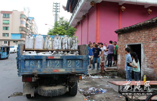 龙港网9月25日讯:昨天上午,龙港镇安全生产监督管理局监察二队工作人员在进行日常的正常巡逻时,发现洪口路392号对面的一个小平房竟然变成了一处危险化学用品非法经营存储仓库,这对周边的居民的安全造成了极大的隐患。龙港镇安监局局长王振重到场指导处理。