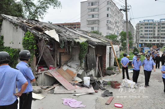 海港路到西三街交叉口属于断头路,不少村民在路旁搭建了违章建筑,用于存放泡沫布料等物品,不仅影响城市容貌,而且存在安全隐患。拆违行动中,执法人员动用挖机将简易棚一一拆除。