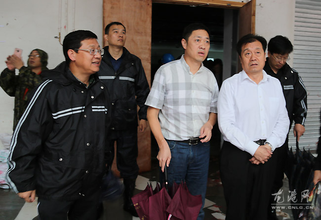 龙港网9月7日讯:今天,浙江省人民政府党组副书记、省政府顾问王建满在温州市委副书记、市长陈金彪,苍南县委书记黄寿龙,县委常委、龙港镇委书记丁振俊的陪同下视察龙港灾情,指导救灾工作。