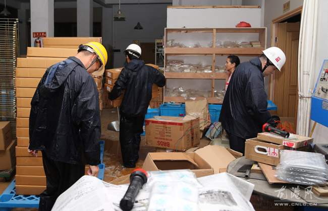 后来,他们在平安村一家新的厂房下面找到安全的地方避险,没多久又发生大面积进水。“我们当时很担心厂房内的人员受险,就不停的敲门叫醒他们,发现厂里很多货物开始被水淹,我们就和厂里的工人们发了一个多小时才将100多箱货物搬到安全地带,再把厂里的工人转到安全地方”杨昌顺介绍说。