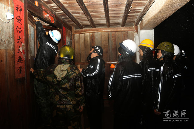 后来,林德包和队友们在往金乡镇的老龙金大道巡逻时,发现有一受损的房间内有灯光,他们立即下车前往敲门。林德包介绍说:“当时我们一敲门,房内的人员就大喊:‘救命’,我们几个人一进门,就看到两夫妻躲在角落里用手电筒照着,后来我们就把他们转到我家里,当时已经有7名受灾群众在我家里避灾”。