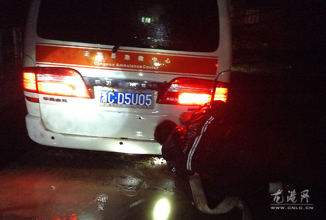 120救护车陷入泥中,龙港壹加壹民防救援队员和龙港民兵紧急出动救援