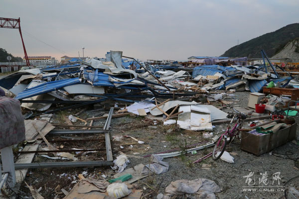 凌晨0时18分,受台风“菲特”影响,华润苍南发电厂内在建各工地棚屋全部倒塌,整体倒塌,现场一片狼藉,所幸由于当晚人员已经全部撤离,没有出现伤亡情况。看到现场工人正在整理废墟中的物品,据该项目部负责人介绍,内部电脑、打印机等办公设备较多,直接经济损失预计近100万元以上左右;里面还有3千工人住居区也全部被毁,预计损失超1000万元。