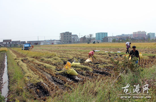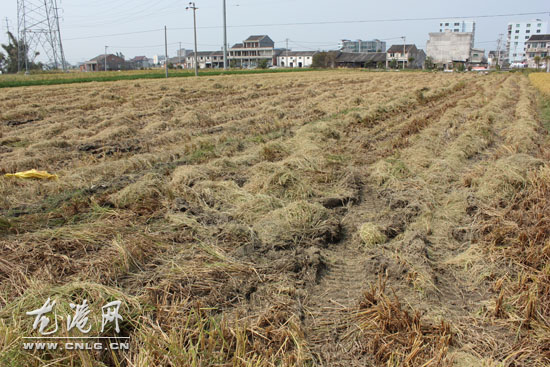 龙港网10月15日讯:遭遇第23号台风“菲特”的袭击,龙港镇一些未及时收割的水稻均受到了不同程度的影响,部分稻田出现大面积的水稻倒伏现象。可台风后天气才好转几日,现又将有冷空气南下,或出现局部降雨,为减少损失,农户展开了激烈的抢收受灾稻谷工作。