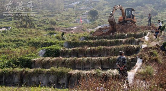 据社区工作人员介绍,近段时间以来,云岩社区“青山白化”回潮的现象较为严重,许多村民趁着夜晚,擅自翻新、扩建和新建椅子坟,今天,他们特意使用了挖土机将部分成片私坟进行覆土、深埋、绿化等生态化改造。