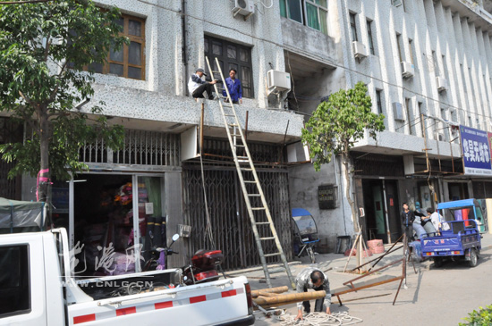 记者在现场看到,人民路上沿街都是商家的广告牌,不少的广告牌都已经破损不堪,有些都只剩下生锈的钢筋骨架,各部分还有断裂摇摇欲坠,存在一定的安全隐患,执法人员用气焊等工具对广告架子进行拆除,以免给行人造成不必要的伤害。