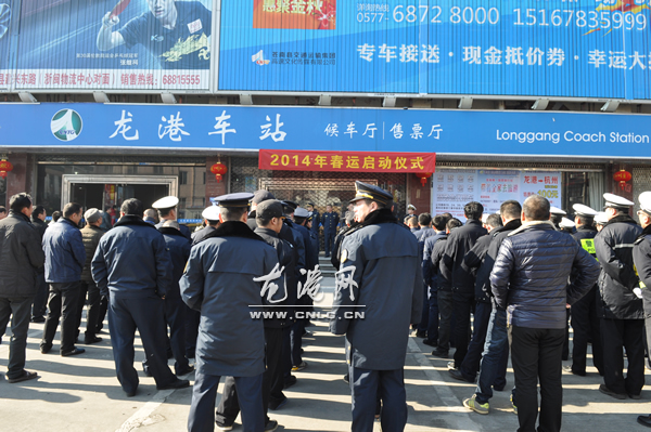 春运历来是人流、车流、物流的高度集中时期,今年春运工作为期40天,从1月16日开始,至2月24日结束。据悉,今年龙港镇春运客流仍主要以外来务工人员、在外经商者、学生及探亲等客流为主。启动仪式上,交警、运政等部门负责人分别做了发言,他们表示,要以高度的责任感和强烈的事业心做好2014春运工作,全警动员,全员上路,从源头抓起,做好一切防范工作,加大宣传教育力度,做到未雨绸缪,狠抓落实,加大对各类交通违法行为的查处力度,尤其加强对客运、货运、危运等重点车辆的检查,严查超员、超速、超载、疲劳驾驶等各种交通违法行为,确保春运期间道路安全有序,为广大群众营造出平安、畅通的春节出行环境,让群众能过上一个安详、安全的新春佳节。