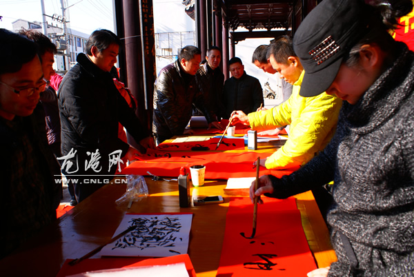 龙港网1月22日讯:今天上午,龙港镇平等社区的张家堡人头攒动,龙港镇文联开展了“书画下乡”活动,为村民现场书写春联。村民们欢欢喜喜地把一幅幅对联带回家,红联、黑墨,映着无数张满足的笑脸。