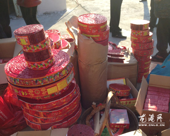 龙港网1月24日讯:(陈记)为了确保市民平平安安过个和谐马年,1月22日,龙港镇安监局深入芦浦社区严查安全生产工作。检查组在巡查过程中,发现芦浦社区临海路和浦中路167号两处非法烟花爆竹储存和加工点,现场查扣烟花爆竹30余件,并转移至安全仓库。