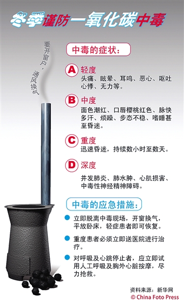每年冬天,都是煤气中毒的高发季节。煤气中毒通常指的是一氧化碳中毒,一氧化碳无色无味,常在意外情况下,特别是在睡眠中不知不觉侵入呼吸道,通过肺泡的气体交换进入血流,并散布全身,造成中毒。