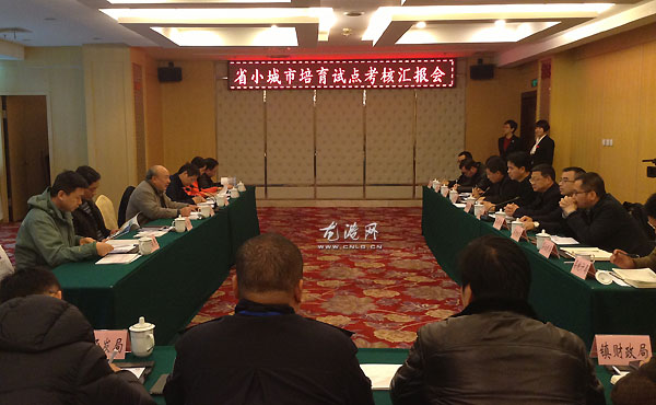 在汇报会议上,考核组一行听取常务副县长黄锦耀代表苍南县委、县政府作苍南县龙港镇小城市培育试点工作情况汇报。他说,2013年,龙港镇完成生产总值185.6亿元,财政总收入18.8亿元,固定资产投资111.8亿元,分别占全县总量的50.9%、50.8%、37.3%。2012年年10月对区划调整后的乡镇财政管理体制进行调整和完善,明确了超收分成比例为65%。2013年税费返还金额6.8亿元,省财政5000万专项补助资金全部落实到项目,县里相应落实小城市培育专项资金1.5亿元。县政府单独切块给予龙港镇安排用地指标,每年安排不少于全县三分之一,由龙港政府统筹安排项目,如有特殊项目另外追加。2013年下达龙港镇用地指标381亩,超出全县三分之一水平。三年来共支持实施122个重大建设项目,完成固定资产投资近289亿元,2013年完成111.8亿元。龙港污水处理厂、华润苍南电厂一期建成投产;沿海高速复线、鳌江跨江大桥、世纪大道拓宽工程、瓯南大桥引桥工程等重大交通项目顺利推进;龙港体育馆、龙港高级中学、松涛嘉园农房集聚点等建设快速推进,城市道路总里程和公共停车泊位比2010年分别翻一番和四番多。同时,龙港新城A1区3184亩填海通过国家海洋局验收,吹填一期实现供地,吹填二期全面推进,海景路等6条道路竣工并完成道路绿化,A18.2施工便道开工建设,时代大道实现全线贯通。全省首家成立龙港行政审批服务中心,2013年进驻部门25个,办理窗口36个,事项办结总量18.8万多件,日均达723件。积极申报全国新型城镇化试点,取得了重要进展,1月22日,国家发改委城市与小城镇改革发展中心副主任邱爱军带队龙港考察有关事宜,2与12日,县委书记黄寿龙又到国家发改委沟通此事,目前进展较为顺利。