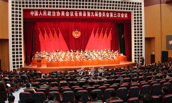初春的细雨浸润着苍南的大地,会场虽没有鲜花点缀,也没有红毯铺地,但简朴又不失热烈气氛。县政协九届三次会议应出席委员357名,开幕会实到委员348人,20名市民应邀参加旁听。
