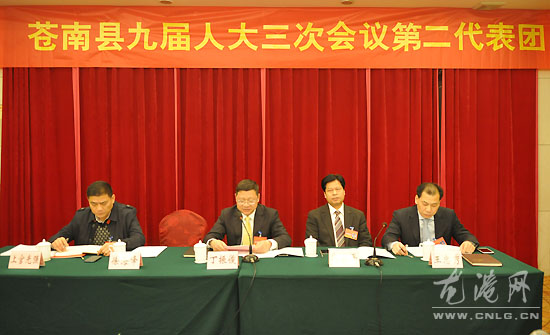 会议传达苍南县委书记黄寿龙在县九届人大三次会议代表团召集人会议精神,要求所有代表要以高度责任感、使命感,大干快上的决心,进一步激发斗志,凝聚合力,高度的政治纪律把大会开好,确保会议的各项任务圆满完成。