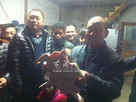 龙港网3月3日讯:近日,龙港白沙社区方中村村民方尚友打来新闻热线,说他捕到了一只约八斤半重的野生大甲鱼,很是稀奇。