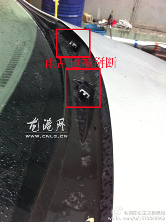 龙港网3月31日讯:今天上午10点许,龙港镇一博友“佩阳公主之果果妈”在新浪微博上发帖称:“本人车辆30号晚上停在龙港港河路253号楼下东边通道,早上起来发现车子上全是脏物,两根雨刮也被掰断。现在车主已经报警,正好路口也有监控摄像头。现在请事主马上现身”。