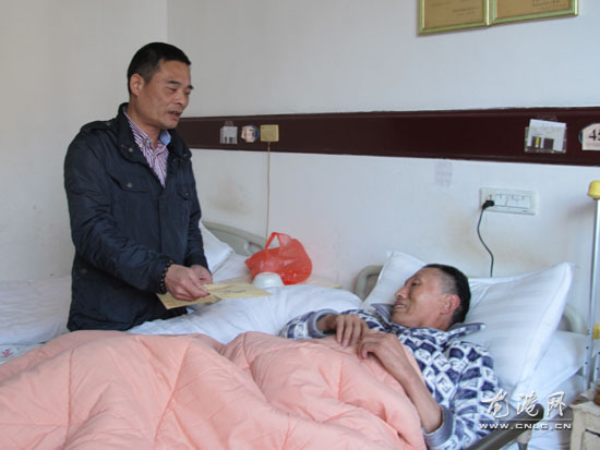 4月4日下午2点许,镇人武部副部长杨介友、镇总工会副主席章瑜一行四人为张廷化送来爱心款, 张廷化激动地说:“外出打工这么多年,还是第一次遇到当地政府这样关心咱军人亲属困难生活,我一定叫孩子在部队安心服役,我也希望自己早点恢复,用自己的行动来回报大家对我的关照。”