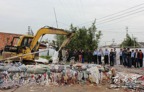 面对危害性十足的非法褪色布角料和加工,龙港镇打击布角料褪色点绝不手软。此次整治行动在通过前期的排摸检查后,执法人员当场捣毁多处布角料褪色点,查扣了其褪色布角料工具。同时,为了防止褪色点死灰复燃,执法人员还将做好捣毁后的督察整治工作。
