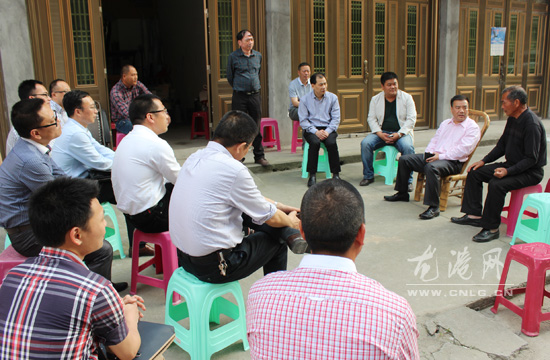 龙港网5月9日讯:在全县深入开展党的群众路线教育实践活动之际,昨日,苍南县委副书记、县长黄荣定带领县府办、考绩办、活动办、国土局、农业局、铁路等相关负责人来到龙港镇湖前社区双龙村开展“走亲连心解忧”活动。镇长王忠秀(副县长级),镇委委员、副镇长谢磊,镇委委员金珍敏陪同。