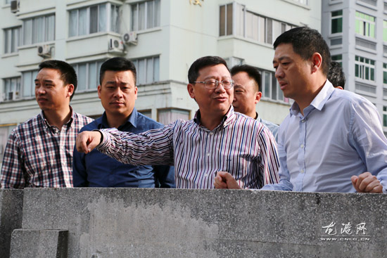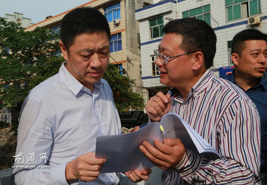 龙港网5月9日讯:昨天下午四点,苍南县委书记黄寿龙率领县委办、水利、环保、住建等相关部门领导一行到龙港视察"五水共治"工作并到龙跃黑臭河整治点进行了督查,为出谋划策,加快河道的黑臭治理;县委常委、龙港镇委书记丁振俊简要汇报目前龙港镇黑臭河整治情况。