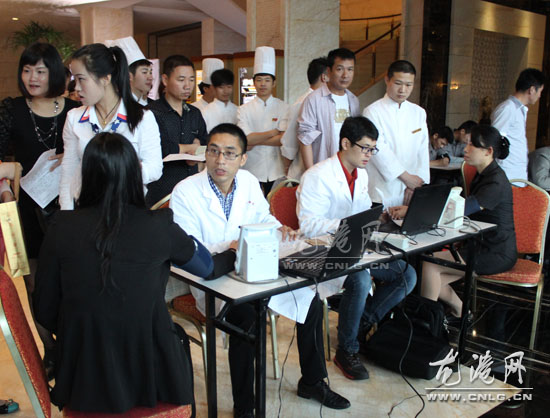 在献血现场,记者看到不少爱心人士冒雨赶到流动采血点,自觉排队等候无偿献血。大家认真的填写登记表,量血压,抽、验血,轻松地走上献血车,自豪地捋起衣服袖子,献出了自己的鲜血。同时,诚大饭店的员工们也踊跃参与到这次无偿献血的爱心接力当中,在检测处排起长长队伍,等候检查献血。