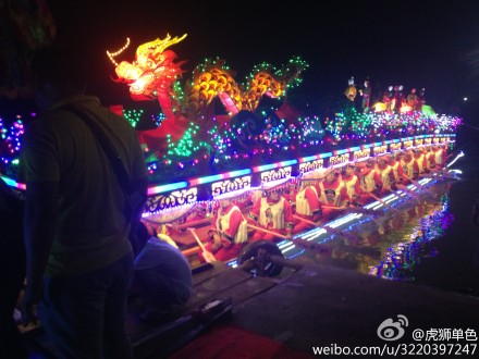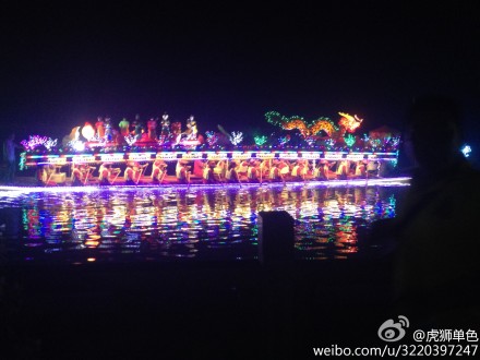 昨晚舥艚社区(中段村女子花舟队)正式上水启航,接下来几天都能看见女子花舟队在中魁河道上划游,别致而美丽的花龙舟慢悠地行驶在河道中,引来附近的居民纷纷驻足观看,还有一些为一睹花龙舟芳容而来的居民在河道旁围观,不少人拿出手机、相机拍照,并发出阵阵欢呼声。整条龙舟从头到尾都布满了彩灯,在黑夜里显得格外闪亮迷人,架在船舱上的七彩龙和各路“神仙”精神奕奕,有种出水入云的气势,加上清一色的美丽划桨人员更让花龙舟成为夜晚中一道靓丽的风景。