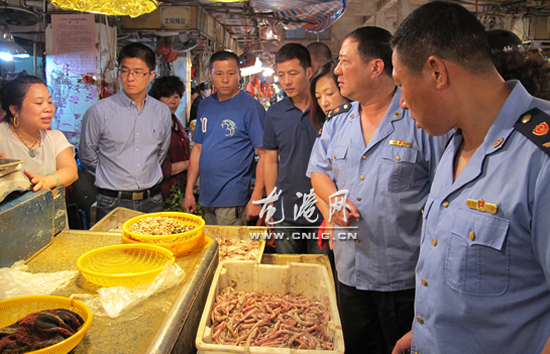 龙港网5月30日讯:为了确保端午期间广大消费者的饮食安全,防止重大食品安全事故的发生,今天上午,由副镇长丁云勇带队,龙港镇商贸办牵头,组织工商、食品药品监督管理所、海洋局、农业局、公安局等部门在全镇范围内开展了节前食品安全联合执法监督检查。