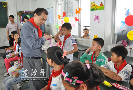 龙港网5月30日综合报道:国际六一儿童节即将到来,龙港镇长王忠秀(副县长级),镇委副书记黄贤满,镇委委员、副镇长赵凯,镇委委员、人武部长黄传朴,副镇长陈贤选等一行人先后来到湖前小学、凤江小学、江山小学、云岩学校等学校,给小朋友们送上节日的祝福。