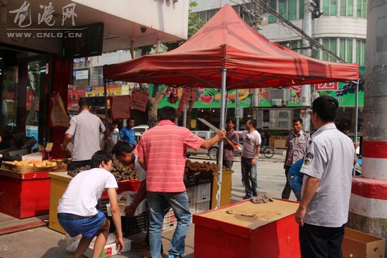 龙港网6月12日讯:为改善美化城市环境,维护良好的社会秩序,今天上午,龙港综合管理执法大队整治了一家位于西城路西一街的水果店,据了解,这家店因为长期占道经营,而且城管多次整治依然不整改,成为了不折不扣的“钉子户”。