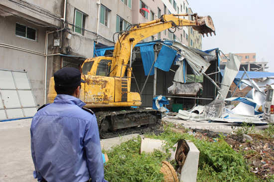 龙网7月11日讯:昨天,龙港镇"两违办"组织国土、公安、城建、住建、电力等部门人员,对新城、海城社区开展拆违行动。