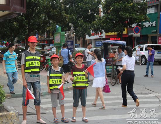 “您好,现在是红灯,请等一会再过马路!”在镇前路和人民路口,一群头戴红色志愿帽、身穿马甲的交通志愿者格外引人注目,志愿者一边给车辆行人宣传“文明礼让”,一边帮助交警维护交通秩序,成为市区一道亮丽的风景线。记者看到,志愿者们吹着哨子,手里拿着小红旗,在路口处协助交警维持交通秩序,劝导纠正行人乱穿马路、闯红灯等不文明行为,大滴的汗水在她们的脸颊流下,斑马线对面的红灯一亮,她立即挥动小红旗,示意行人不准再过马路。