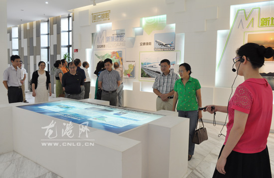 俸兰一行首先来到龙港新城展示馆,对龙港新城的区位、港口、能源、环境和资源五大优势进行实地了解。龙港新城鳌江入海口南岸,是温州融入海西经济区的前沿阵地,是浙台经贸合作区的核心区,也是鳌江流域中心城市的核心区,俸兰对龙港发展的三次跨越和民族工作给予充分肯定,并对龙港新城的发展前景十分看好。