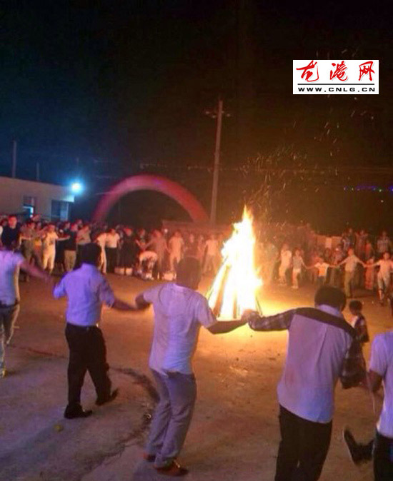 随着礼炮声响起,彝族同胞身穿民族服饰,点燃火把,唱着彝族歌谣,大家纷纷将手上的火把放到活动中心的木柴堆上,木柴堆顿时燃起了高高的火苗。彝族同胞便手拉着手,围着熊熊燃烧的火堆,高声欢呼,在悠悠情歌旋律中尽情地跳起欢快的达体舞,共同庆祝来自家乡传统的节日!